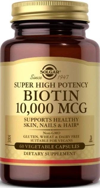 Вітаміни та мінерали Solgar Biotin 10,000 mcg 60 капсул (Біотин)