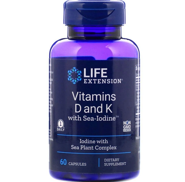 Вітамін D та К з йодом, Vitamins D and K with Sea-Iodine, 60 капсул Life Extension 000316377