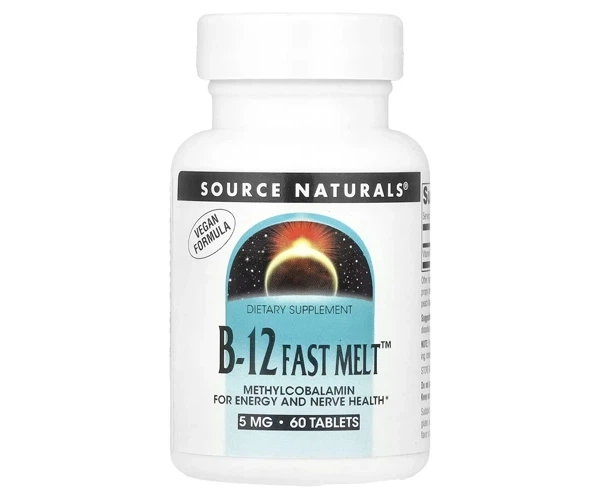 Вітамін B12 метилкобаламін Source Naturals (MethylCobalamin B-12 Fast Melt) 5000 мкг 60 таблеток SNS02462