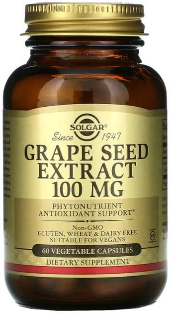 Екстракт виноградних кісточок Solgar Grape Seed 100 мг 60 вегетаріанських капсул в упаковці (ARE-574160)