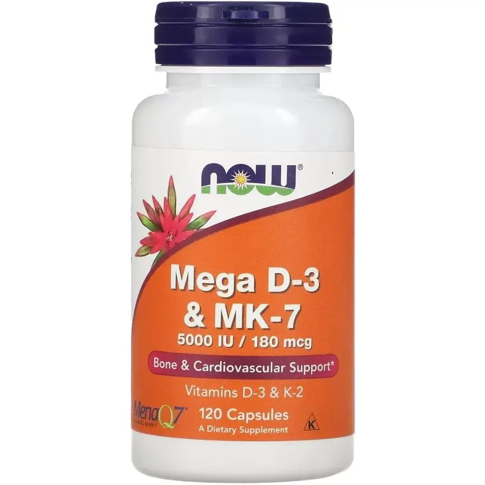 Вітаміни та мінерали NOW Mega D3 & MK-7, 120 вегакапсул