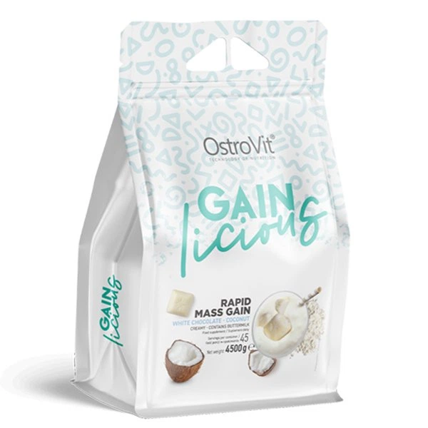 Вуглеводно-білкова добавка для росту м'язової маси GAINlicious Ostrovit 4500 г Білий шоколад з кокосом (30250003)