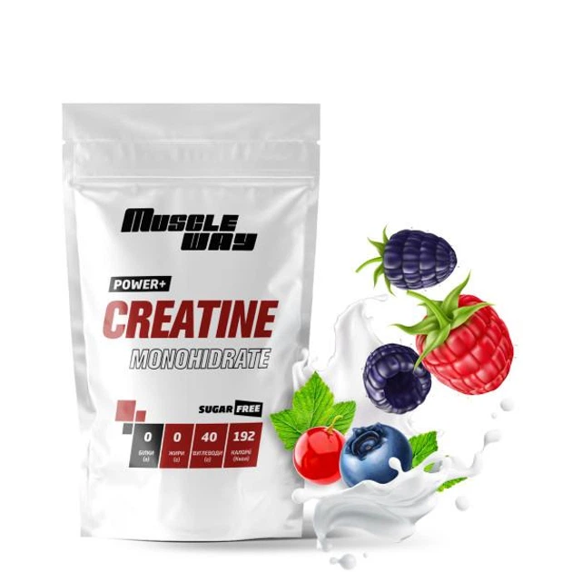 Креатин моногідрат MuscleWay POWER+ 99,9 Sugar Free на 50 порцій 250 г Лісові ягоди (21-125-cre-mw-rs250.l)