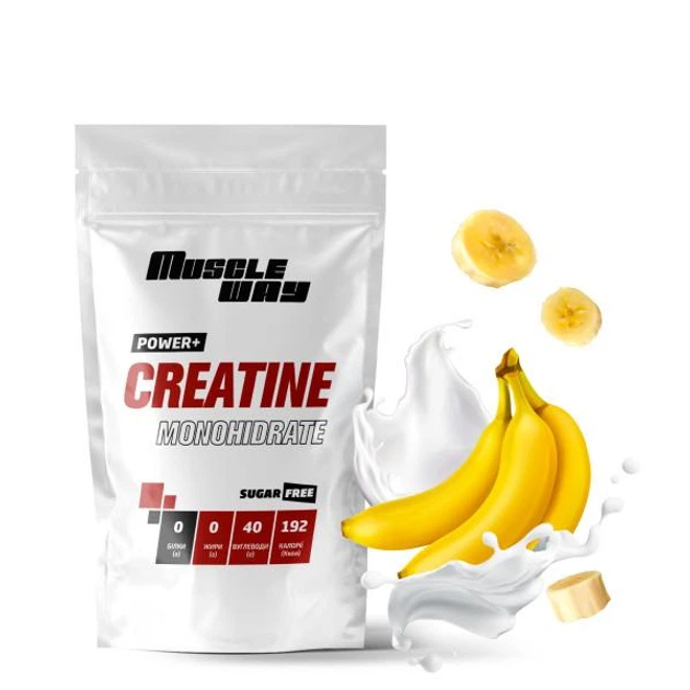 Креатин моногідрат MuscleWay POWER+ 99,9 Sugar Free на 50 порцій 250 г Банан (21-125-cre-mw-rs250.b)