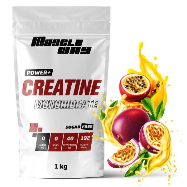 Креатин моногідрат Muscle Way Creatine Monohіdrate POWER+ 99,9 порошковий на 200 порцій 1 кг Маракуйя (14-125-cre-mw-rs1-2)