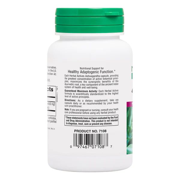 Natures Plus Herbal Actives Ashwagandha 450 mg - стандартизована рослинна харчова добавка на основі екстракту кореня ашвагандхи, яка давно використовується в траволікуванні, щоб стимулювати здоровішу реакцію на стрес. Особливості: - Підтримує функцію здорової реакції на стрес - Підтримує здорову функцію мозку - Сприяє витривалості та виробленню здорової енергії - 450 мг ашваганди у