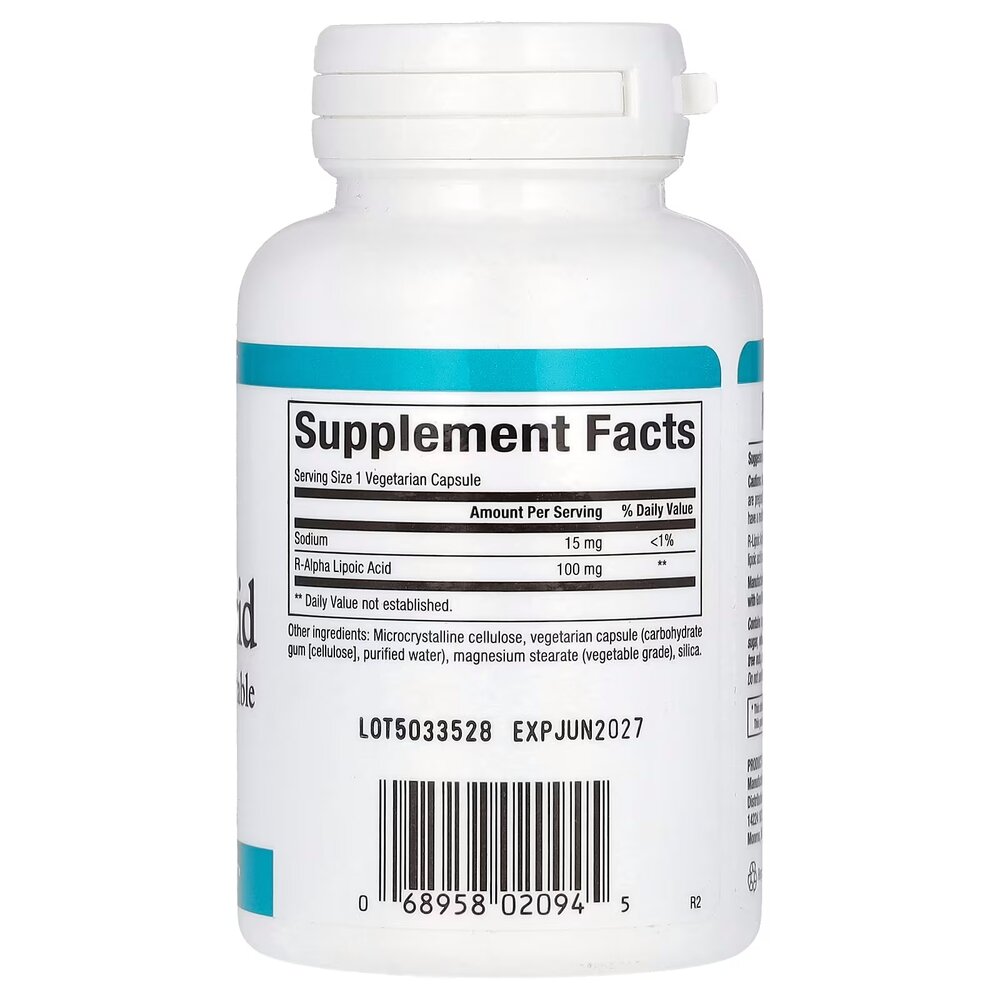 Natural Factors Натуральна добавка Natural Factors R-Lipoic Acid 100 mg, 60 вегакапсул для антиоксидантного захисту