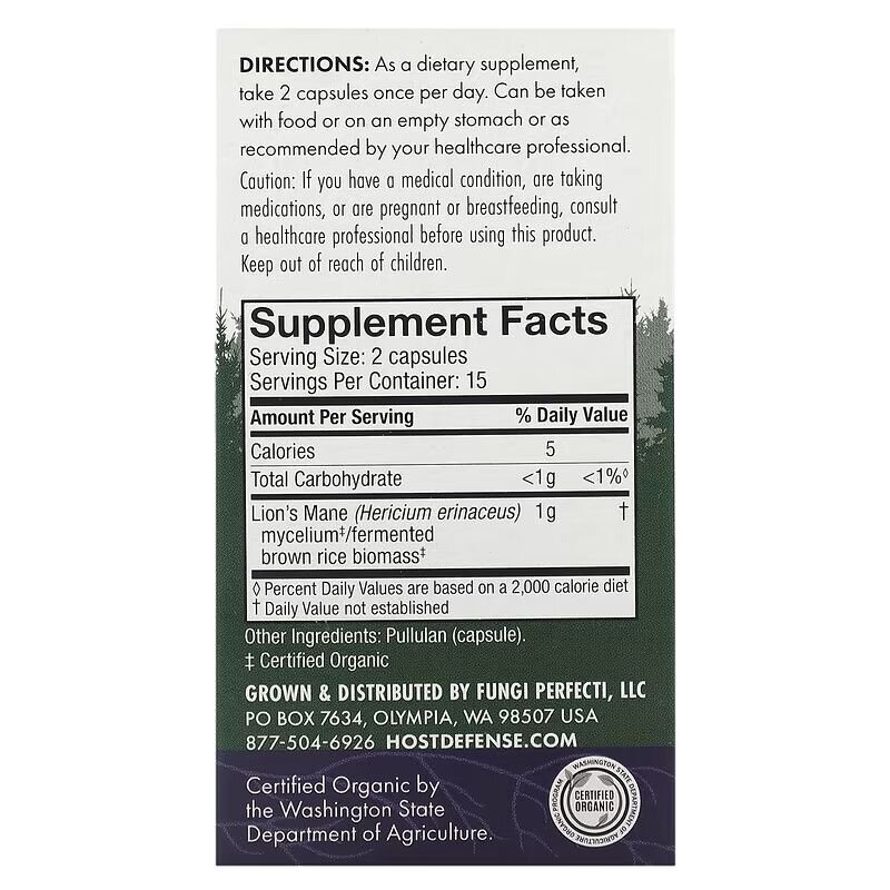 Host Defense Lion's Mane – ідеальний вибір для тих, хто шукає підтримку для когнітивних функцій, пам'яті та настрою. Давно відомий своєю підтримкою нервової системи дослідження показали, що Левова грива може збільшити фактор росту нервів. Особливості: - Сприяє ясності розуму, концентрації уваги та пам'яті. - Підтримує збалансований настрій. - Сприяє здоров'ю нервової