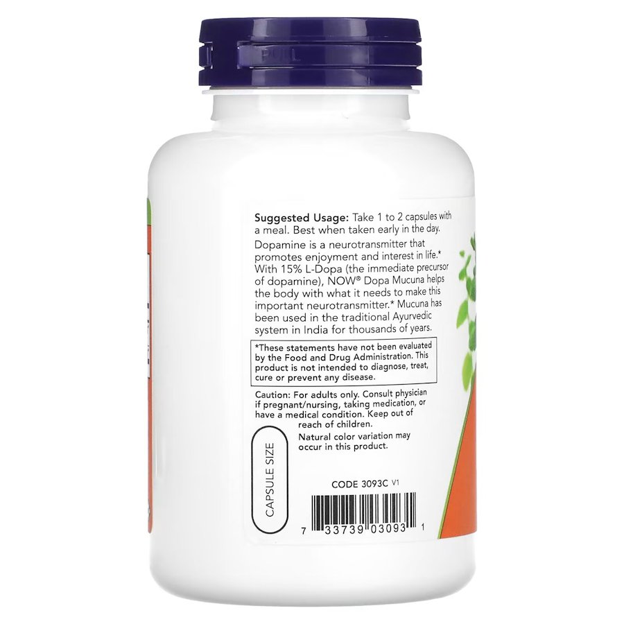 NOW Натуральна добавка NOW Dopa Mucuna, 180 вегакапсул