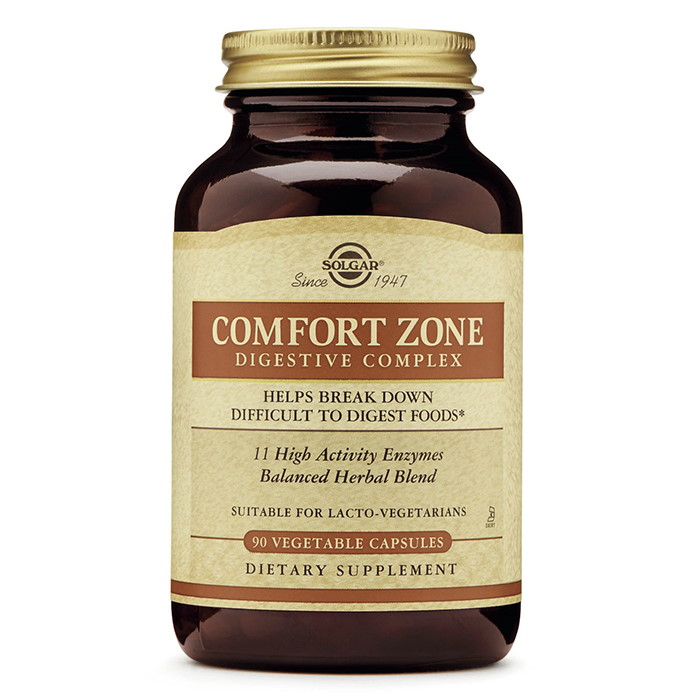 Solgar Comfort Zone - це просунутий травний комплекс, який сприяє більш ефективному та ретельному травленню, так що ви можете краще ставитися до їжі, яку їсте, і менше турбуватися про їжу, яка вам подобається. З 11 природними ферментами, Solgar Comfort Zone допомагає підтримувати природний процес травлення в організмі, так що ви можете перетворити те, що ви їсте в те , що вам потрібно. Як приймати: