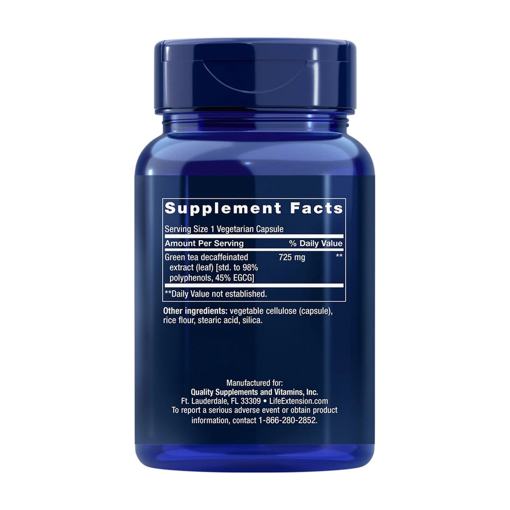 Life Extension Mega Green Tea Extract Decaffeinated - натуральна харчова добавка, що містить екстракт листя зеленого чаю, який підтримує здорове розмноження клітин, метаболічну функцію та здоров'я серцево-судинної системи. Особливості: - Містить понад 325 мг потужного EGCG - Підтримує клітинне, серцево-судинне та когнітивне здоров'я - Допомагає підтримувати рівень холестерину в межах норми -
