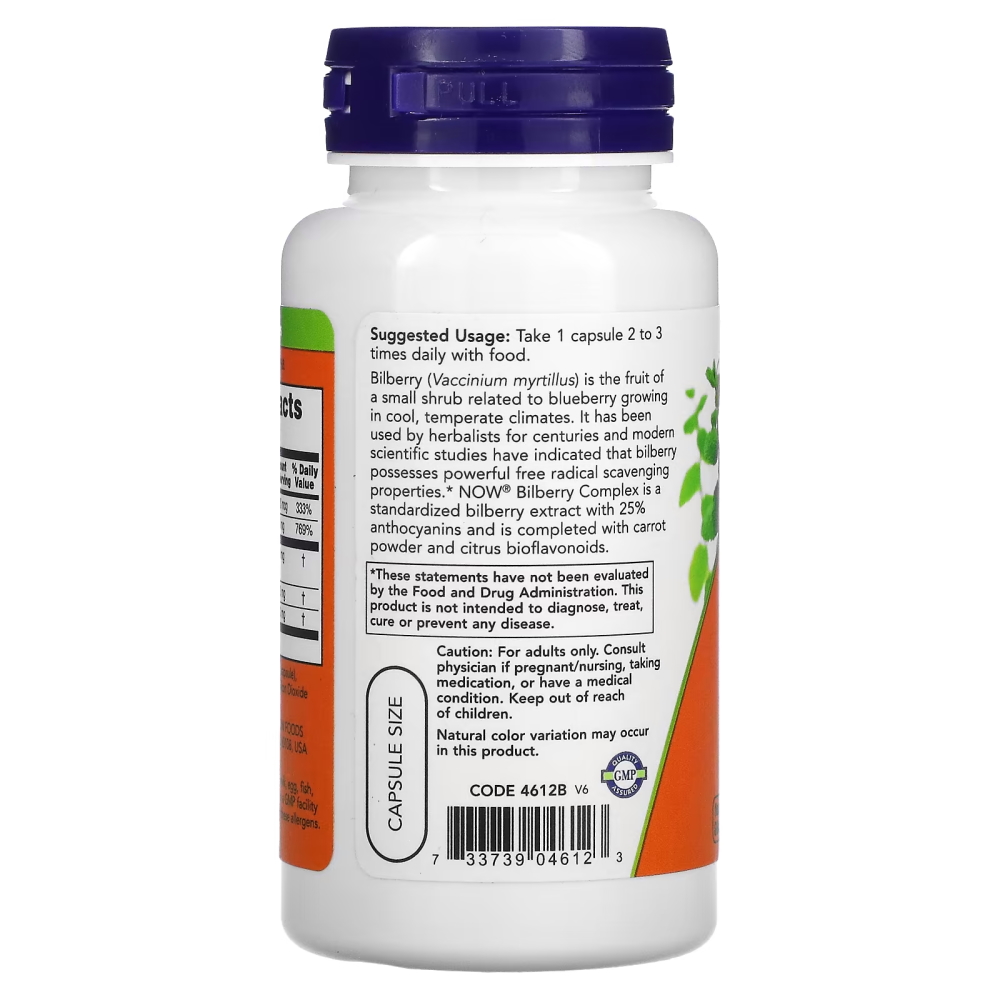 NOW Натуральна добавка NOW Bilberry Complex, 100 вегакапсул