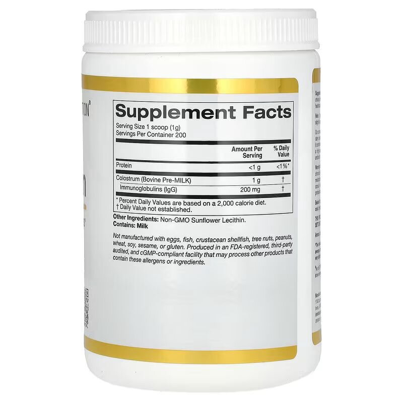 California Gold Nutrition Натуральна добавка California Gold Nutrition Colostrum, 200 грам