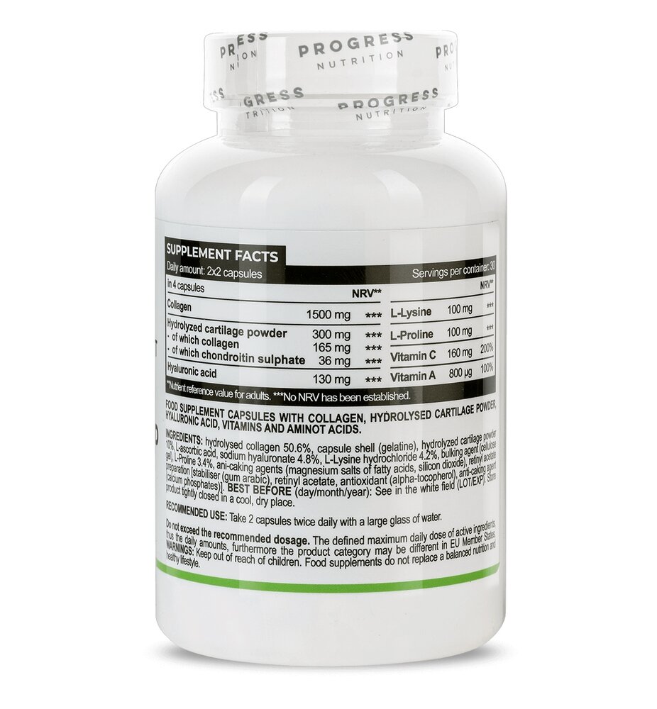 Progress Nutrition Hyaluronic Acid & Collagen - це харчова добавка, що поєднує гіалуронову кислоту та гідролізований колаген, призначена для підтримки здоров'я шкіри, суглобів і зв'язок. Особливості Progress Nutrition Hyaluronic Acid & Collagen: - Містить гіалуронову кислоту, яка сприяє зволоженню шкіри та підтримці її еластичності. - Збагачена гідролізованим колагеном, що підтримує здоров'я суглобів, зв'язок і