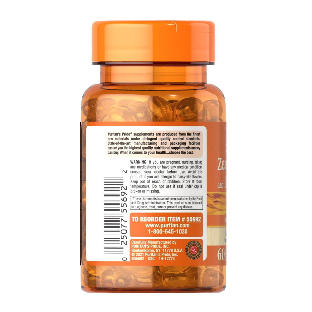 Puritan's Pride Zeaxanthin 4 mg з Lutein 10 mg - натуральна харчова добавка на основі лютеїну та зеаксантину, який здавна використовується для здоров'я органів зору. Особливості: - підтримання гостроти зору - нейтралізація вільних радикалів - оздоровлення шкіри та волосся - уповільнення вікових дегенеративних змін зору - виведення з організму токсинів Лютеїн та зеаксантин – це