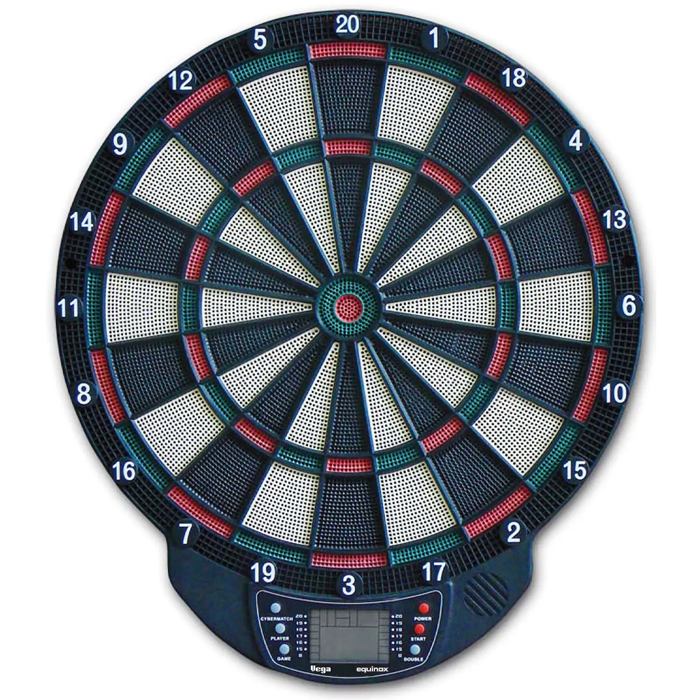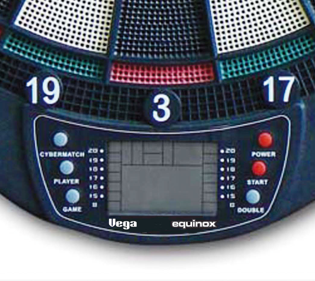 Equinox Vega (DA-20) - мішень для гри в дартс із електронним табло та голосовими і звуковими підказками. Дана модель має 20 ігор із 65 варіаціями. Запатентована функція Cyber Match призначена для гри наодинці. Особливості: Традиційне кольорове забарвлення секторів мішені. Від 1 до 8 гравців. Живлення відбувається від 3-х батарейок ААА (не йдуть в комлекті). РК-дисплей показує загальну кількість