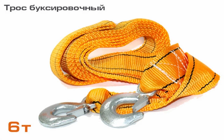 Трос буксирувальний ТР-250-6-3 6т 60мм5м помаранч 2 гаки прапорці сумка