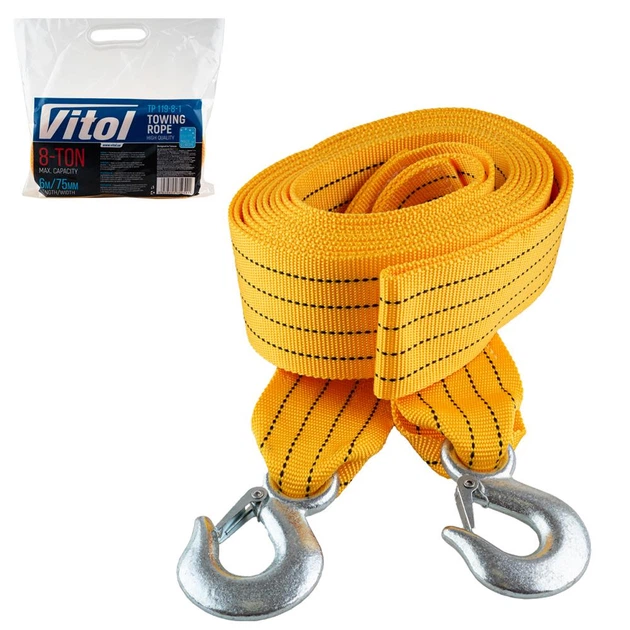 Трос буксирувальний VITOL 8т стрічка 75мм х 6м / 2 гаки