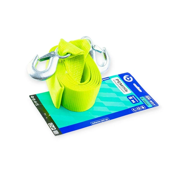 Трос буксирувальний стрічка 5 т х 5,0 м х 60 мм гак, салат, блістер Balansa