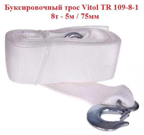 Буксирувальний трос Vitol ТR 109-8-1, 8т, 5м/75мм, гак