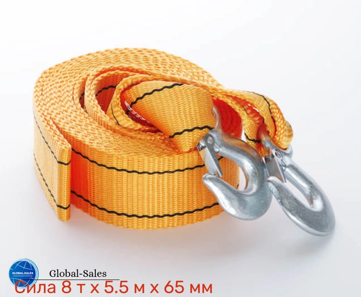Трос буксирувальний посилений з подвійною пряжкою 8 тонн 5,5м*65мм гаки СИЛА