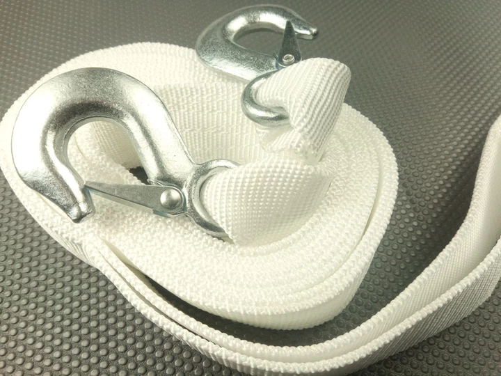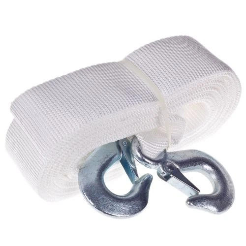 Трос буксирувальний 5т стрічка 50мм 5,0м білий 2 гаки в кульку ТР-206-5-1