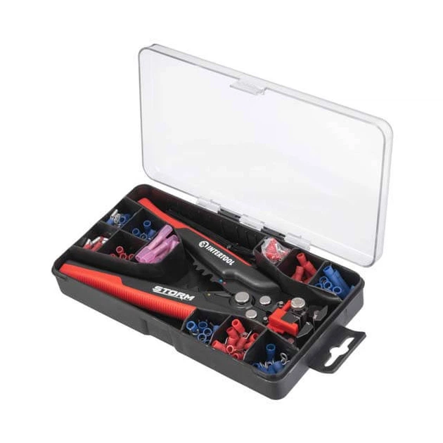 Знімач ізоляції автоматичний 200 мм, набір обтискних клем, STORM INTERTOOL HT-7024