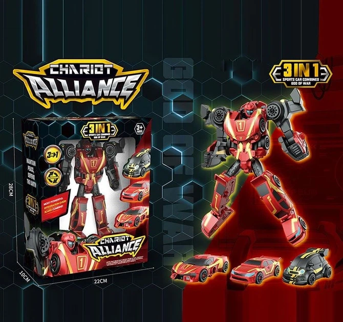 Трансформер Q 1930 3 в 1, робот трансформується у 3 машинки, висота робота 19 см, в коробці