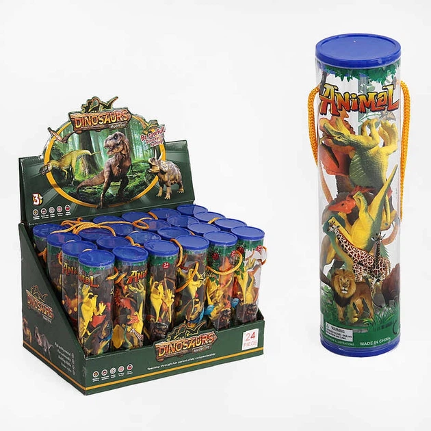 Набір динозаврів 894 (12/2) тубус, камінь, кущик, ціна за 24 штуки в блоці, в коробці