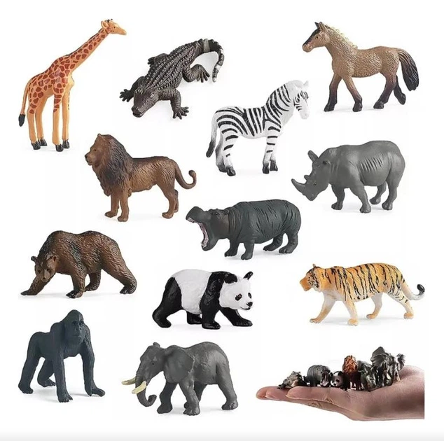 Набір іграшкових тварин 12 шт. – фігурки диких тварин для дітей (лев, слон, тигр, жираф, зебра, панда та інші)