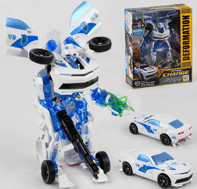 Трансформер Feng Sheng Робот-машинка 20см Поліція звук, світло, пара FW338-6