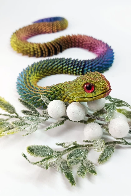 Змія рухома іграшка 60 см Синьо-зелено-фіолетовий