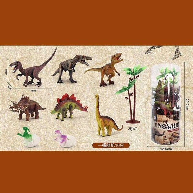 Набір динозаврів JB 008 T 10 дорослих особин, 3 особини в яйці, пальма, тубі