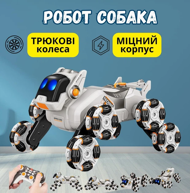 Робот-собака на радіо керуванні співає, танцює, змінює колір очей, виконує команди
