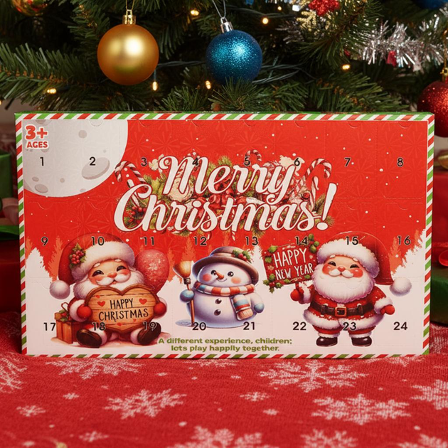 Новорічний адвент календар для дітей 24 віконця з фігурками Санта Сніговик Merry Christmas подарунковий набір колекційні мін