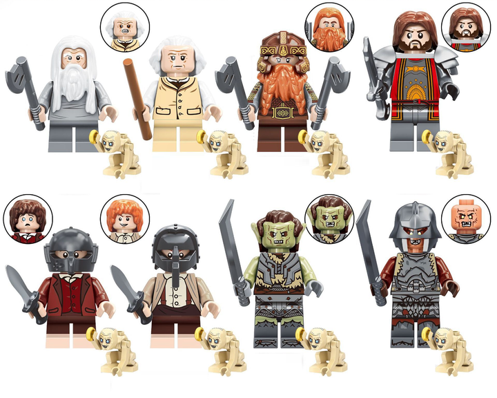 Набір фігурок Володар кілець Lord of the Rings Гімлі, Більбо, Фродо, Сем, Ісільдур, Орки