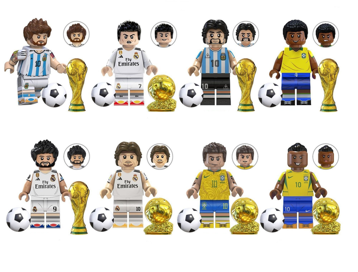 Набір мініфігурок футбольних зірок - Кріштіану Роналду, Ліонель Мессі, Неймар, Зінедін Зідан, Гарет Бейл, Девід Бекхем, Кілі