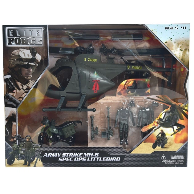 Ігровий набір ELITE FORCE - БАГАТОЦІЛЬОВИЙ ГВИНТОКРИЛ MH-6 (гвинтокрил, мотоцикл, фігурки, аксес.)