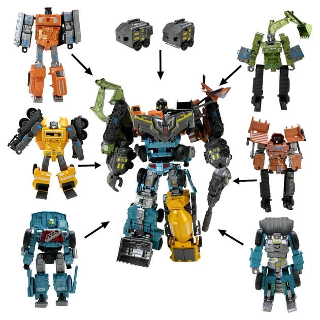 Робот-трансформер YuTeng 40 см Urran Hero Самосвал, екскаватор, 2 бульдозера, бетономешалка, автокран 908-2B