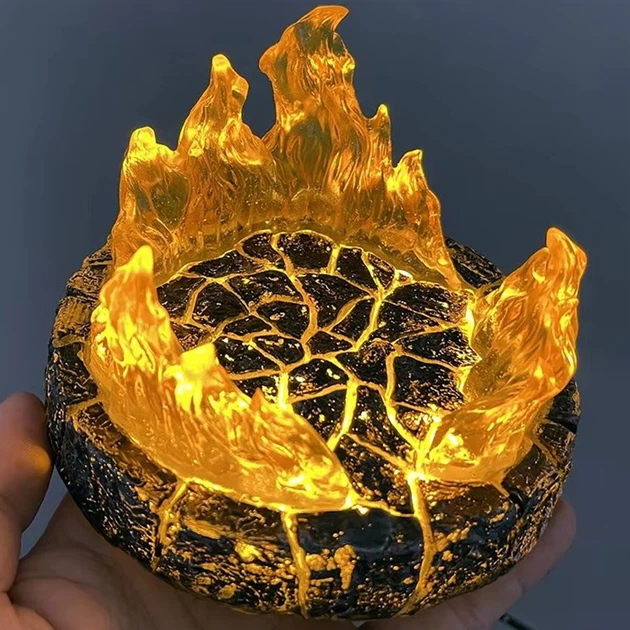LED-підставка BauTech для фігурок з ефектом магми та кристалів 12 х 8 см Жовте полум'я Жовтий (1014-971-03)