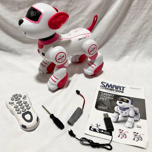 Собака робот на радіокеруванні ходить лежить і сидить із USB-кабелем рожевий (BG1533)