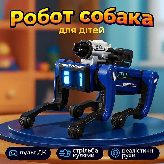 Розумний робот-собака з пультом і голосовим керуванням (англійська мова), світловими ефектами та стрільбою м’якими кульками,