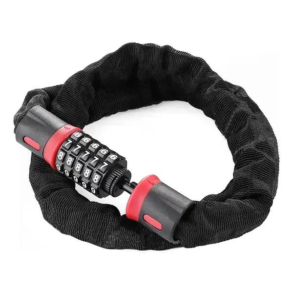 Замок ланцюговий велосипедний кодовий 6х1000 мм, чорно-червоний