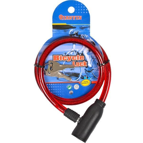 Замок для велосипеда ланцюговий велосипедний 6 х 1000 на ключі, червоний