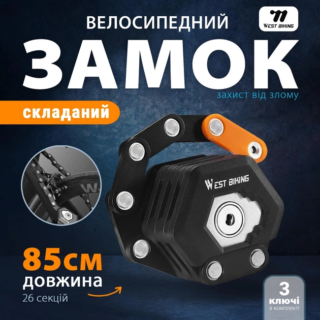 Велосипедний замок West Biking WB-26 вело замок ланцюговий сегментний на ключ із захистом від злому