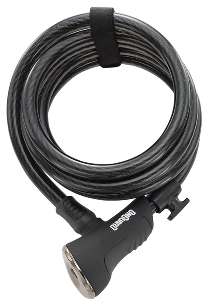 Замок ONGUARD DOBERMAN. спіральний трос 185см х 12мм, 5 ключів, поворотний тримач на раму, чорний