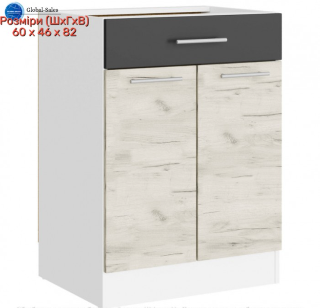 Кухонні модулі Еко Ніз шухляда 600, Білий, Дуб крафт білий, Графіт