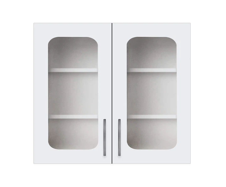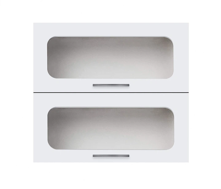 Навісна шафа-вітрина (дводверна - двері горизонтальна) (скло 4 мм) High ширина 800 МАКСІ-МЕБЛІ Дуб сонома/Білий гладкий (740