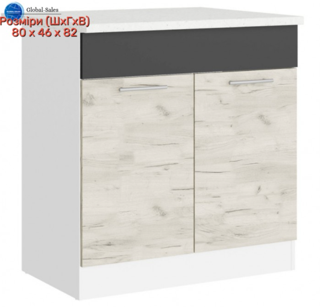 Кухонний модуль Еверест Еко Низ ящик 800 зі стільницею Білий,Дуб крафт білий,Графіт 80х46х82 см