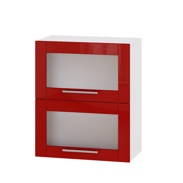 Кухонний модуль Модерн Верх ВВ14-600 Горизонт 720 Дві вітрини Червоний Глянець, Білий